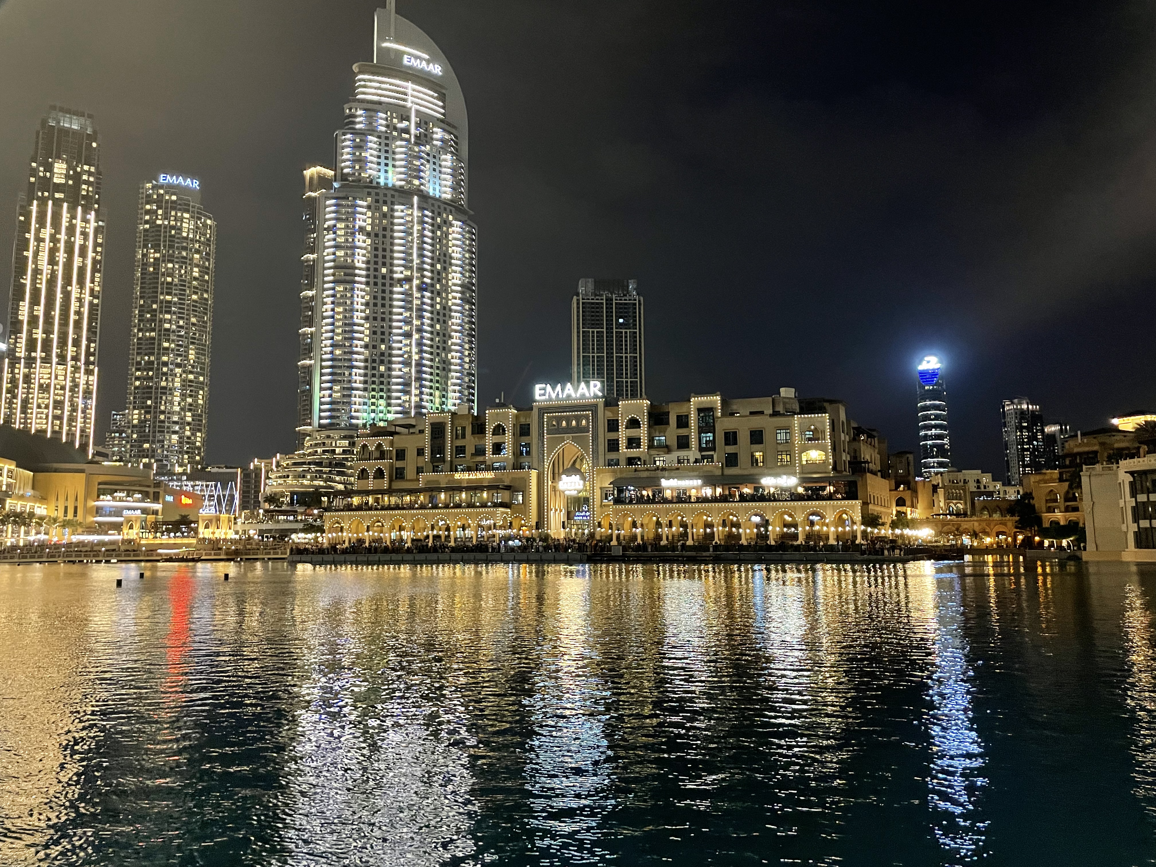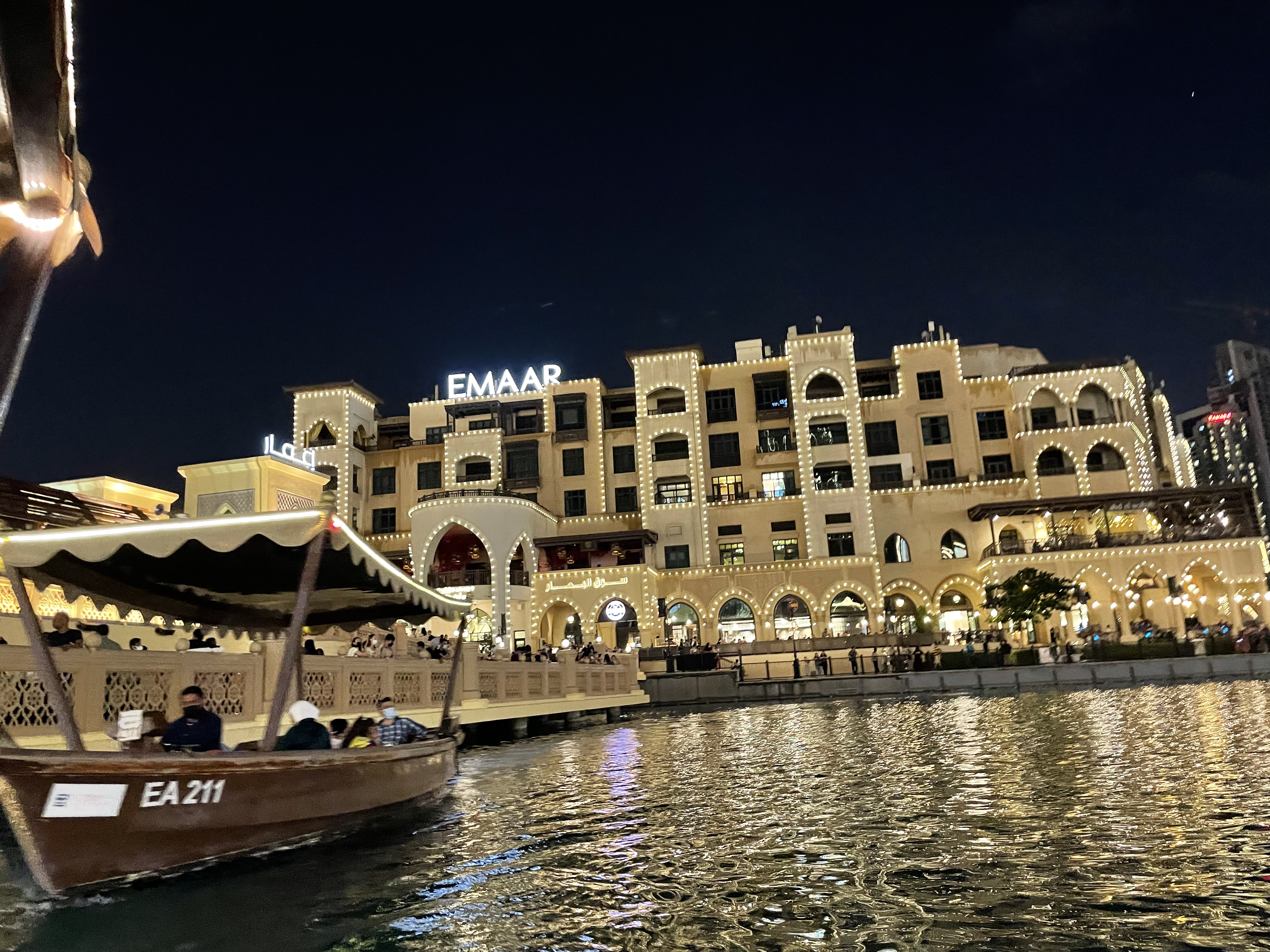 The Dubai Fountain is a choreographed fountain system located on the 12-hectare (30-acre) manmade Burj Khalifa Lake, at the center of the Downtown Dubai development in Dubai, United Arab Emirates. Illuminated by 6,600 lights and 50 colored projectors, it is 275 m (902 ft) long and shoots water up to 500 ft (152.4 m) into the air accompanied by a range of classical to contemporary Arabic and world music. The lake ride is 40 mins long and the guests get to enjoy the fountain show during the ride. People from different countries visit Dubai to enjoy this mesmerizing view of the magical fountain show at Burj Khalifa Lake.